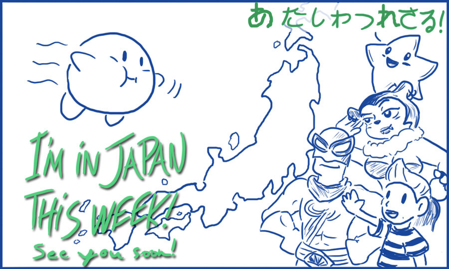 Matthew's in Japan this week! When he returns, he will bring tales of intrigue as well as various spices, sushi, and imported video games.