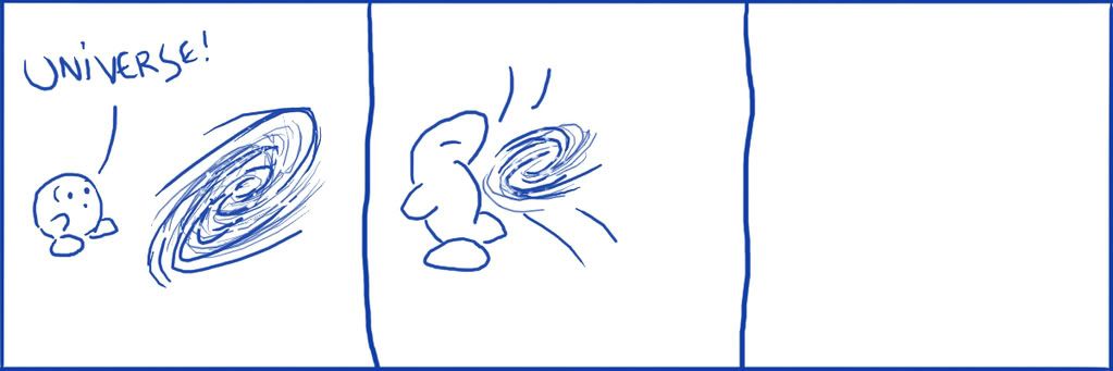 I like the idea of Kirby swallowing the universe, although this comic sort of has a non-punchline. Things were still pretty experimental at this point. For a more in-depth version of this concept, check page 18 of this book!