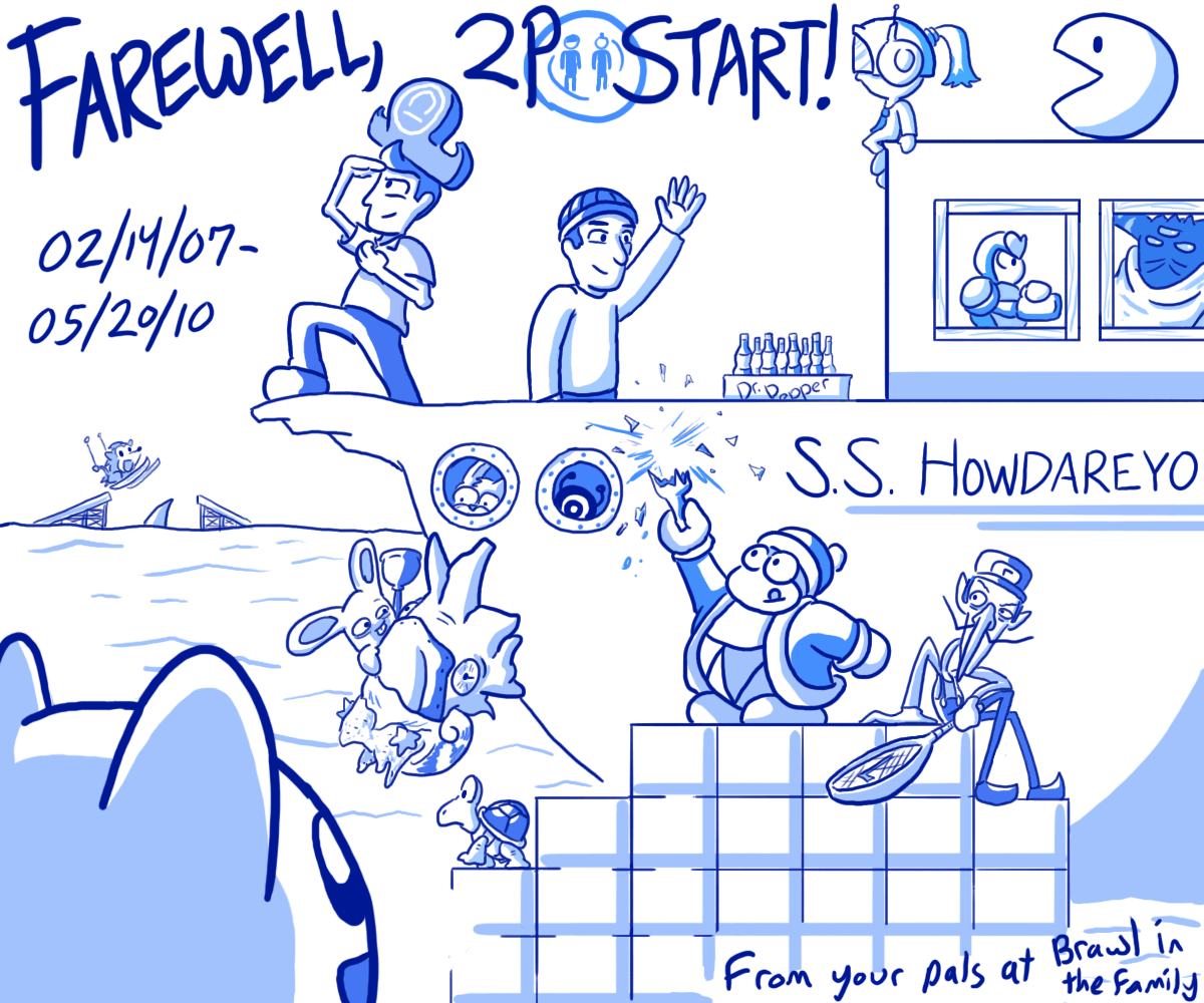 Also, fellow gamer comic 2P START! has just posted their whopper of a finale, and to join in the well-wishing, I've made a small dedication for Tim and Ray: