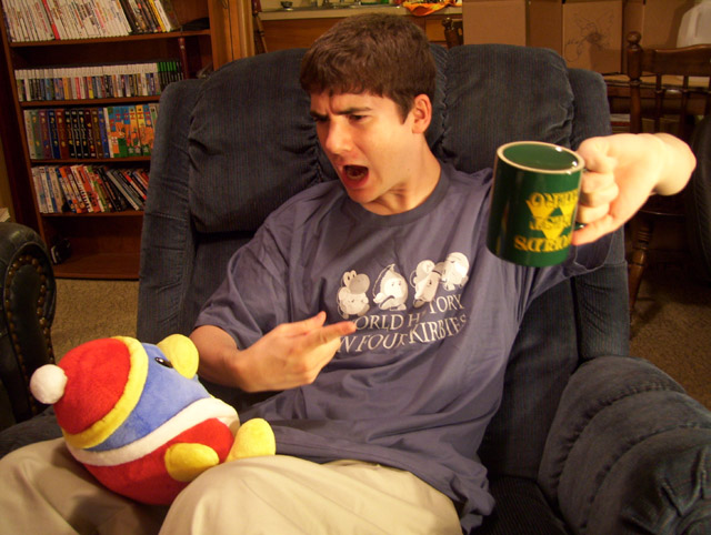 After taking this photograph, Matthew became confused at the absence of liquid in his coffee mug, and he took out his anger on the hapless Dededoll. Fortunately, they soon patched up their differences.