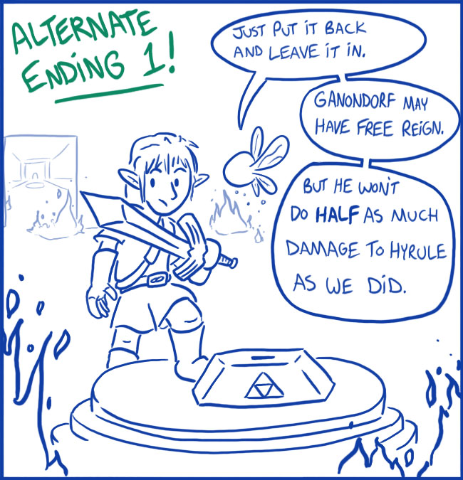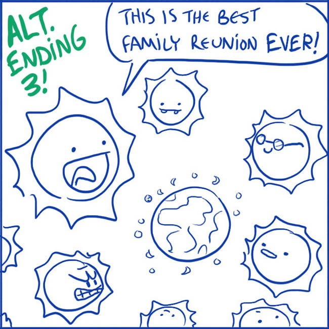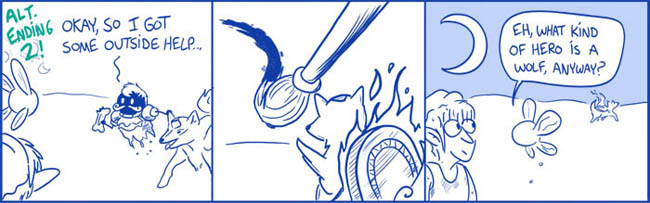 This one arc sort of has a non-ending of the disaster just getting worse, so for the benefit of you folks out there who want some sort of closure, I offer three alternate endings for your pleasure!