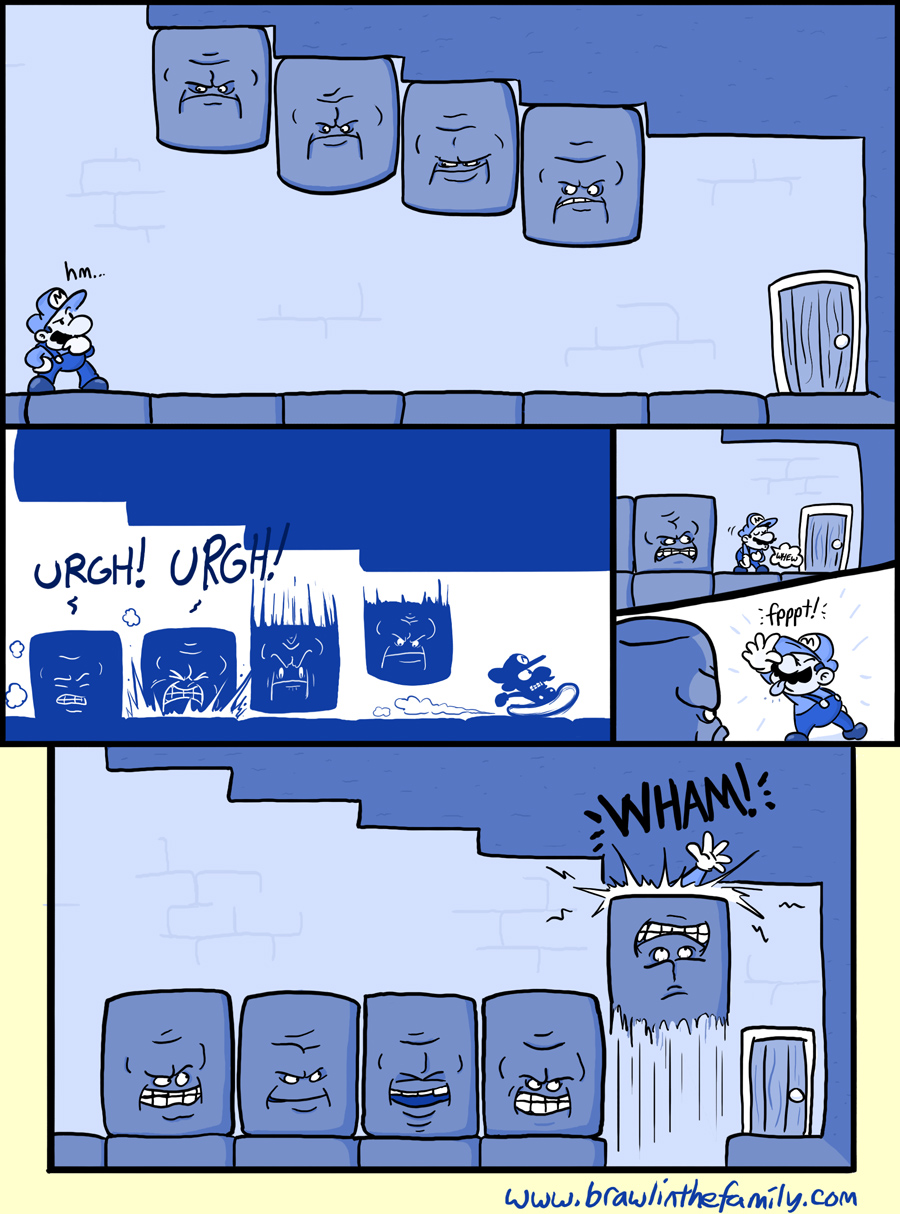 Really, the whole castle's made of Thwomps. You were doomed the moment you stepped in, Mario.