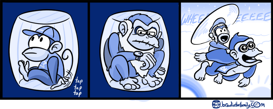Tired of not being picked, Cranky later learned to do the helicopter twirl with his beard.