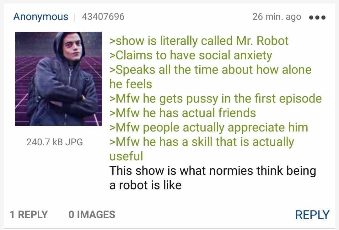 Well they can’t have a real Mr Robot show, it’d be a fucking disaster.