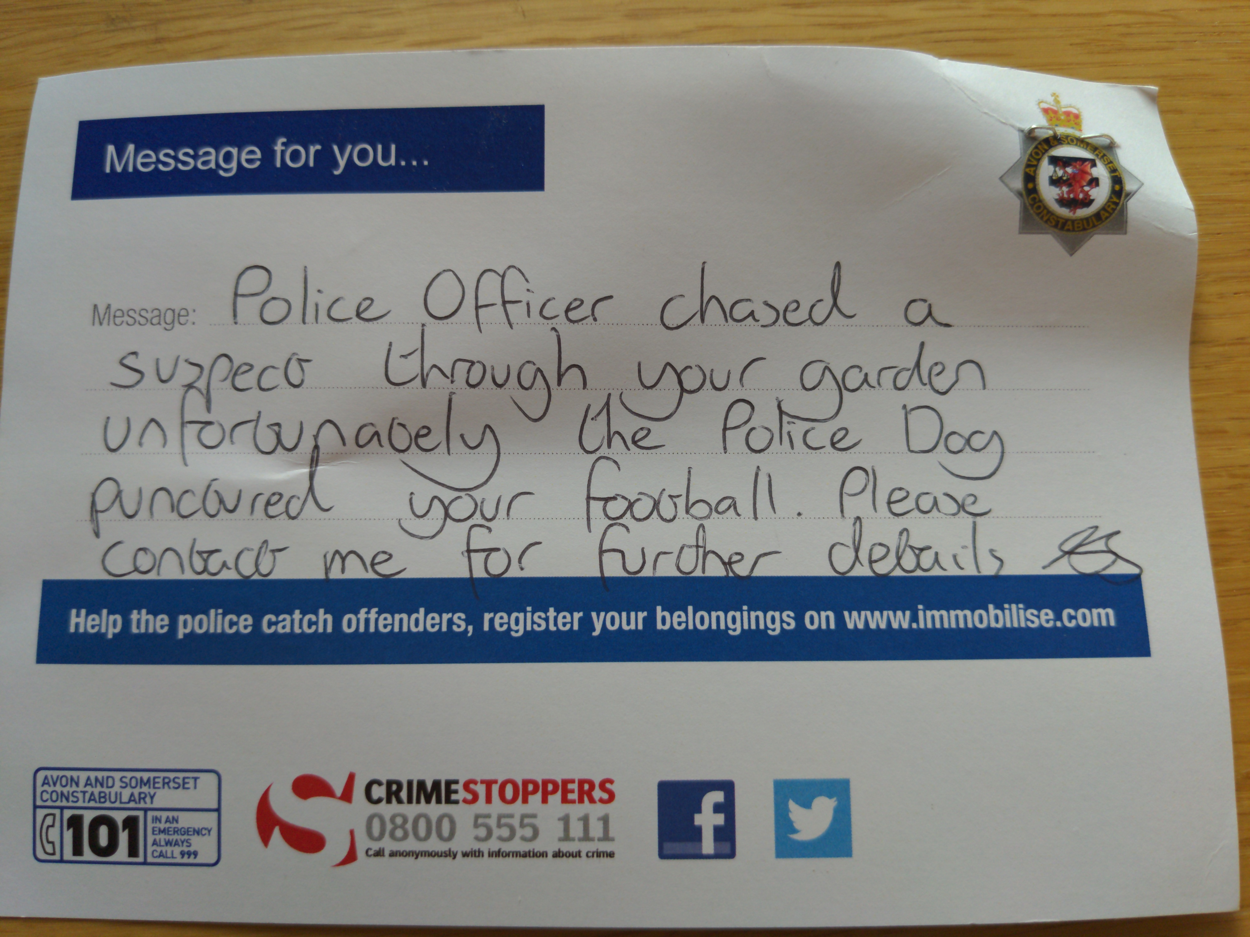 To all Americans about to comment about the quaintness of Britain and to draw comparisons to Americas more belligerent police culture; Iโd like to point out the note is from the Avon and Somerset Police Constabulary. Thatโs the West Country in England. Iโd wager itโs probably one of the safest and friendliest areas of the country and so this is less surprising. OP most likely lives in a small town or village or possibly in Bath or Bristol.
