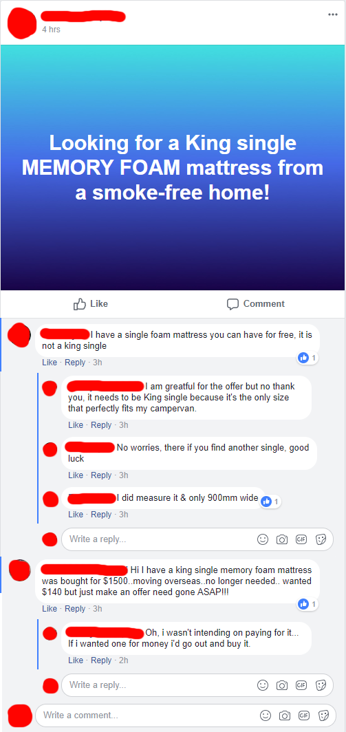 Just need a mattress for my campervan donโt intend on paying for it sweetie. NEXT!!!