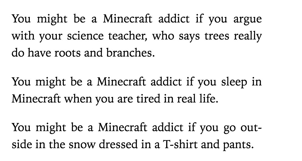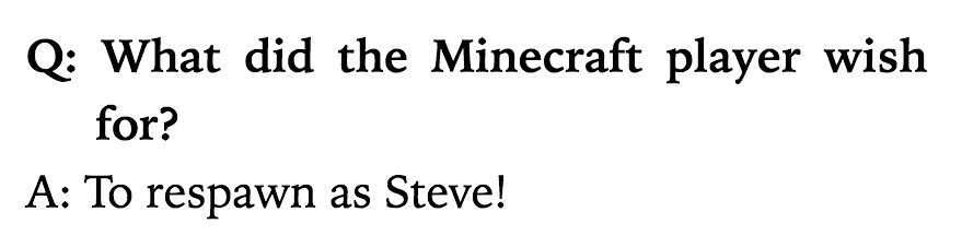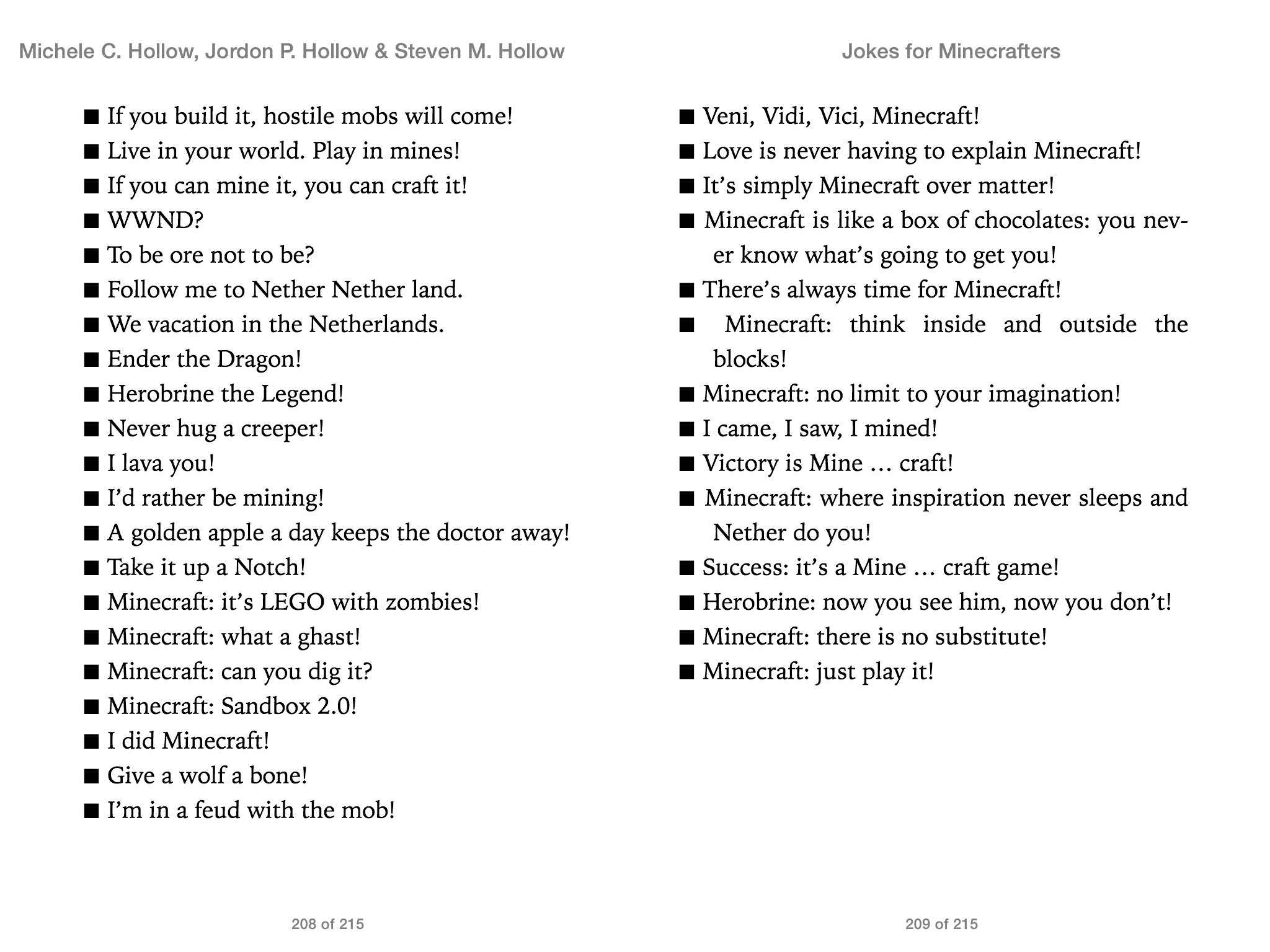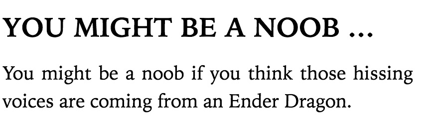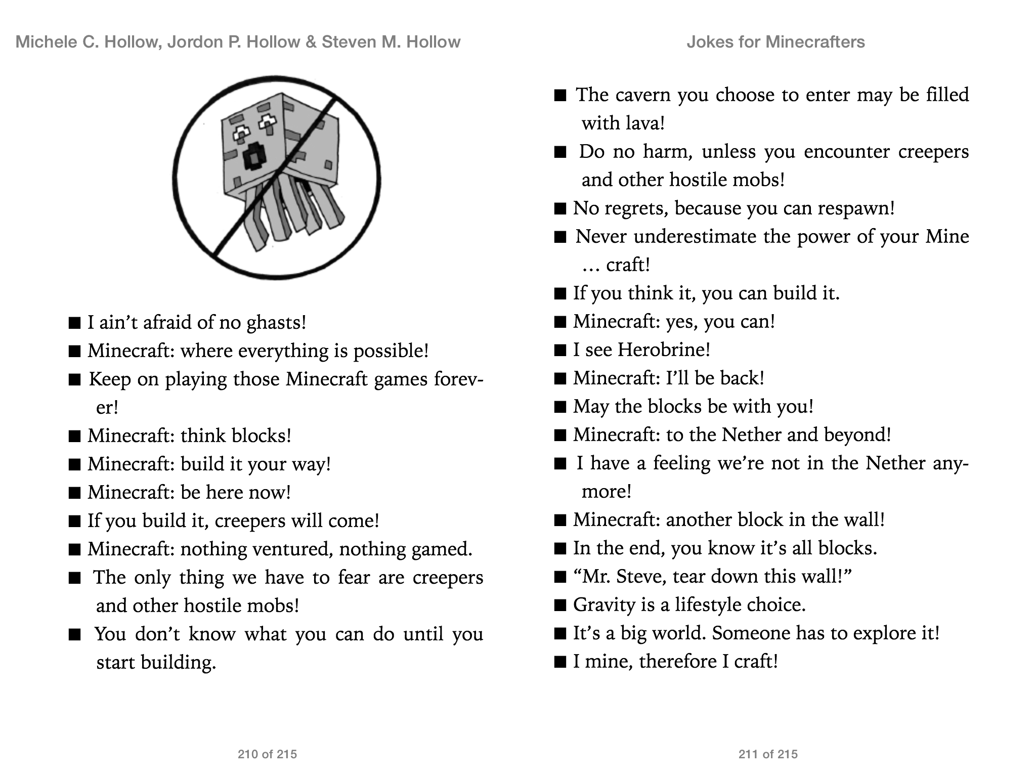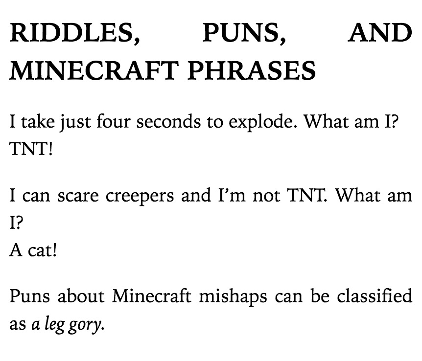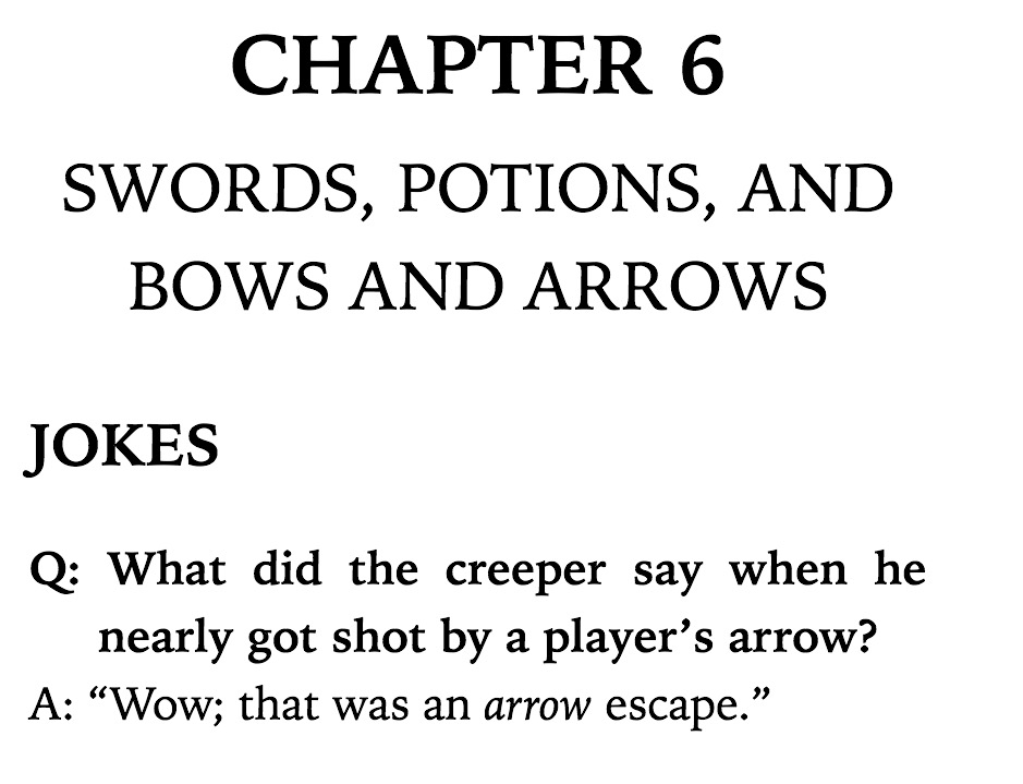For the record, I have never played Minecraft. My reaction to these jokes will be based entirely on what is presented to me by this book.