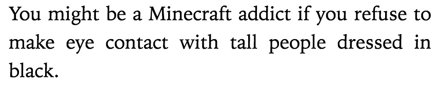 I'm a nerdy-ass 16 year old (though I haven't played Minecraft much in a couple of years) and I'm pretty sure I would have been mortified by these jokes a year ago.