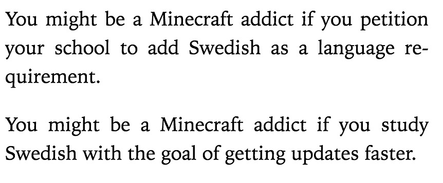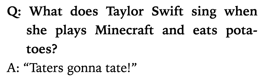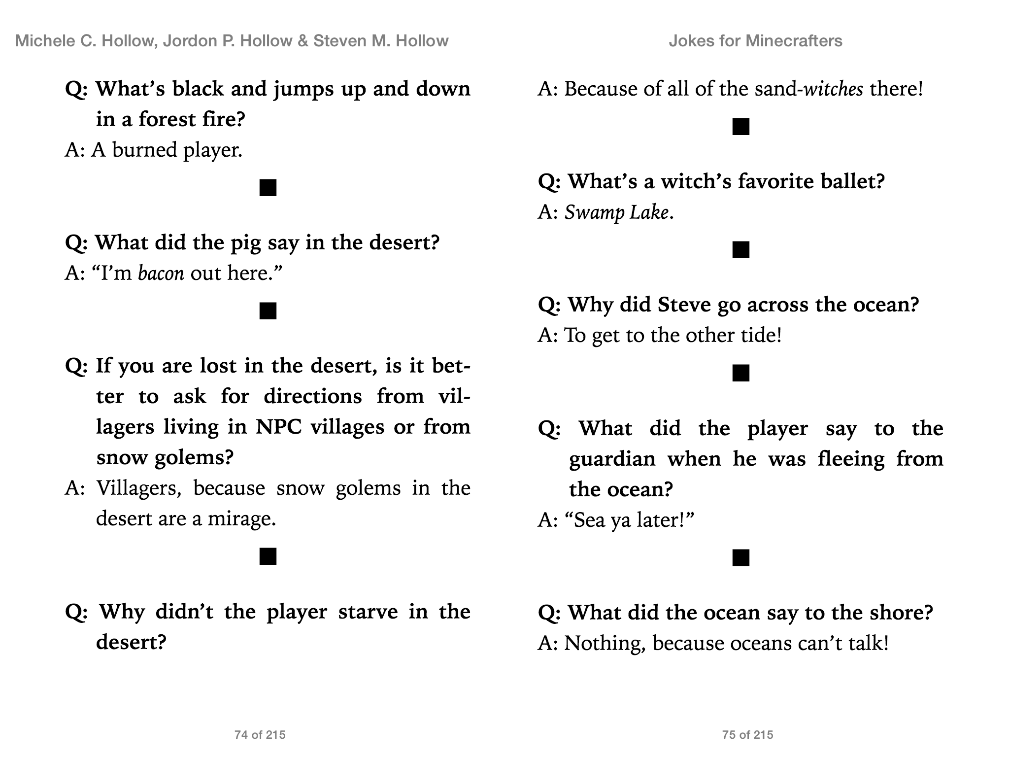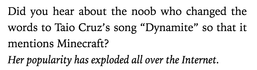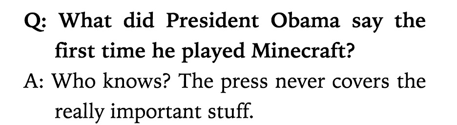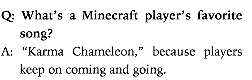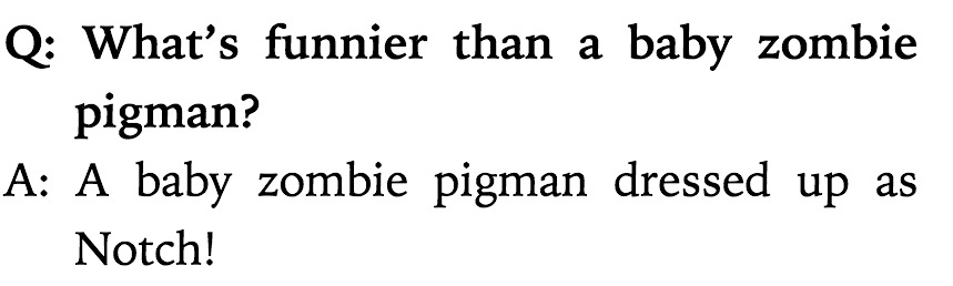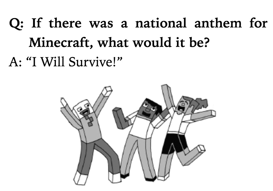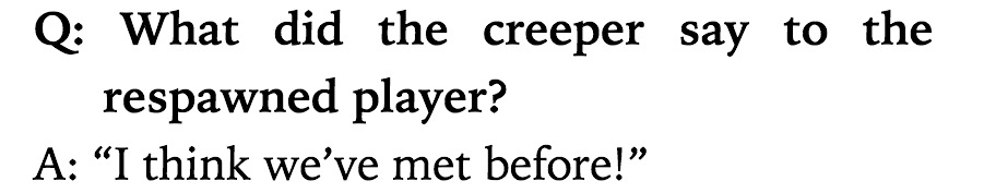 For the record, I have never played Minecraft. My reaction to these jokes will be based entirely on what is presented to me by this book.