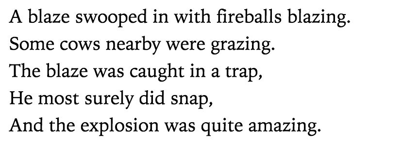 Not content with crimes against humour, now the book is attacking the art of poetry itself