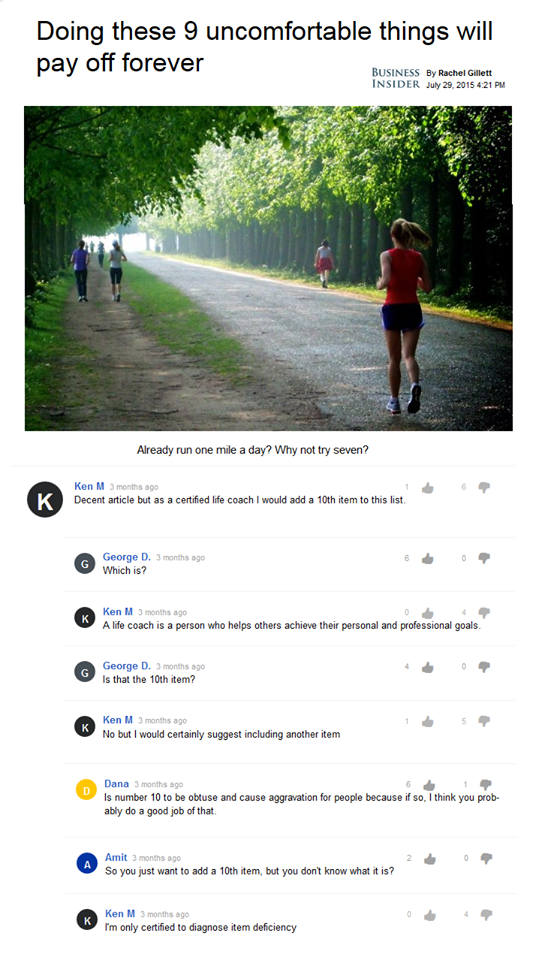 Can we take a bit of a break from appreciating the brilliance of Ken M and talk about that caption? "Already run a mile a day? Why not try seven?" They want us to just increase our run distance by 600%?! WHAT?
