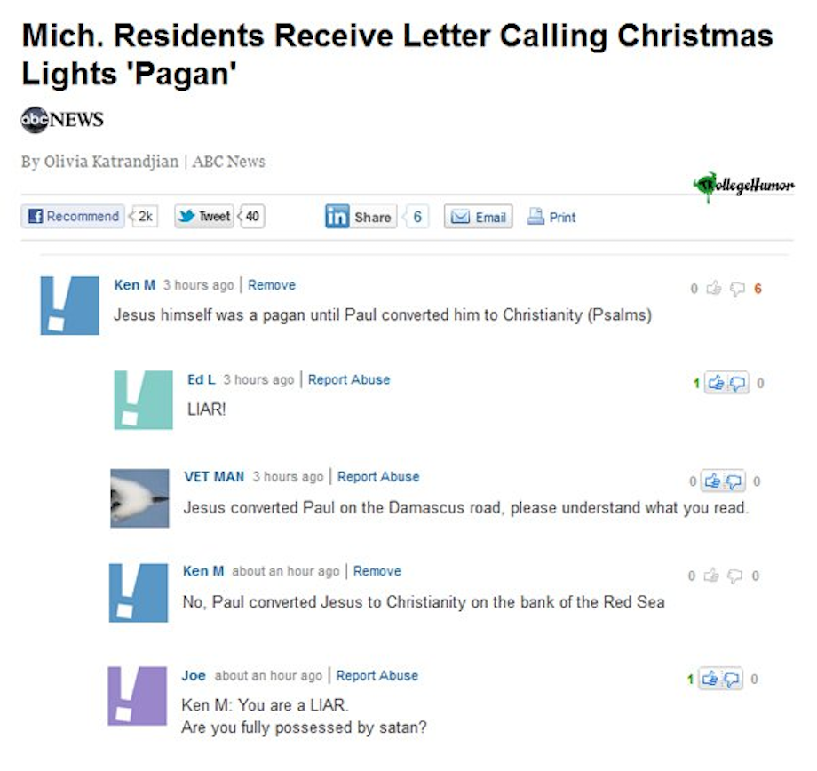 That's great. Ken M should do more religious trolling