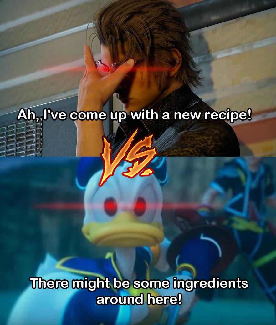 I think they just took elements of FFXV and injected it into Kingdom Hearts 3 because they thought it would flesh out the game, but I'll be honest, I don't want cooking in KH3. It doesn't fit, it's completely unnecessary and I want Donald to shut the hell up about ingredients already.