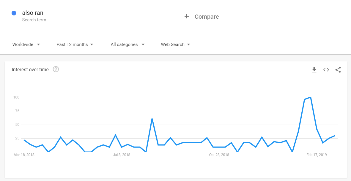 XionLea "also-ran" and nobody knows what it means so the Google results are really high around a week of KH3's release.nightstarred ยท 22 points ยท Posted at 02:52:39 on March 14, 2019 ยท (Permalink)