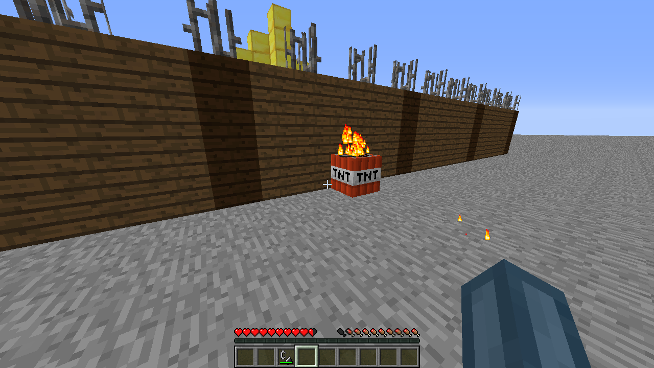 Say I need to get past this huge wall because the plot of this crappy roleplay says so. I can't light the TNT by hand because I might get hurt, but I could lay a fuse of gunpowder to light.