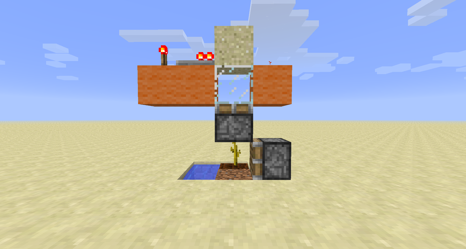 This is for large (when I say large I mean like HUGE) melon farms where pressing a button would require lots of redstone - still, you can create a huge farm and brag about your items per hour. Also, this actually gives you more items per hour than pressing a button - if you wait until a lot of melons have grown - there is time for more melons to grow when you are waiting.