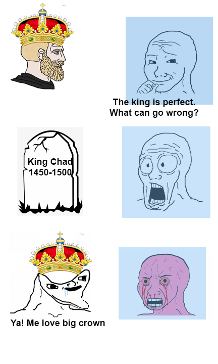 Instead of losing our Chad king and possibly getting a retarded heir, we have democracy, where only retards can ever get elected.