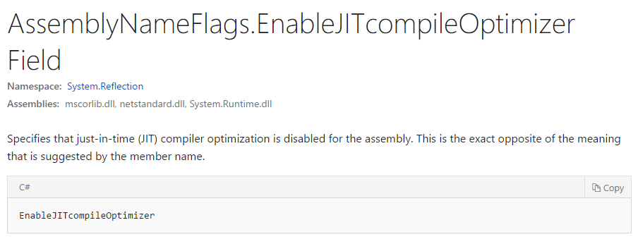 EnableJitCompileOptimizerwas the most elegant way to handle acronyms. Especially if you have two acronyms in a row. Like which of the following is better (ignoring the stupidity of the name):TCPIPFTPClientorTcpIpFtpClient[deleted] ยท 26 points ยท Posted at 17:14:02 on May 28, 2017 ยท (Permalink)