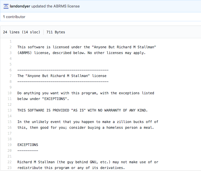 Time to make my "Anyone But People Who Have Used The Anyone But Richard M Stallman License License".