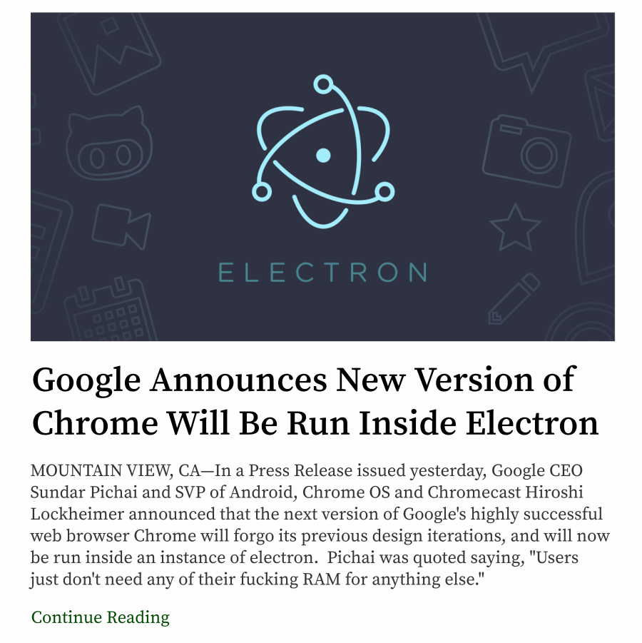 That males me both happy and sad. I was hoping there existed a programmer centric, Onion like news site. That said, good work man, gave me a chuckle