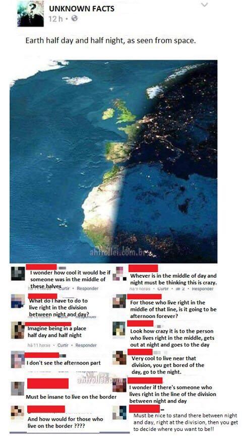 This is really stupid on all parties involved. I don’t think that image is correct. The earth would have a gradient of day to night which this doesn’t have. However all the dumbasses in the comments are still stupid.