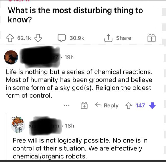 The guy at the bottom there is interesting. He tries to be so scientific and nihilist and basically just ends up with Calvinism