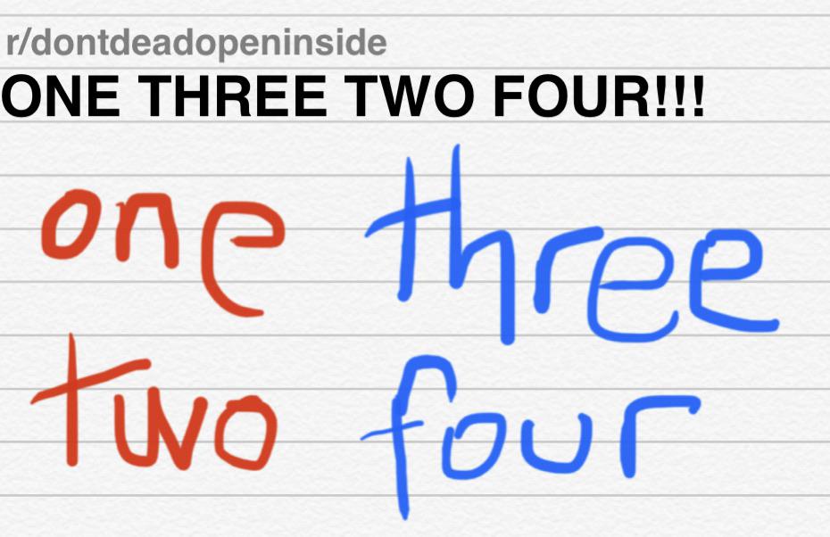 Before I saw what sub this is, I genuinely thought this was some sort of memeing of the "one fish, two fish, red fish, blue fish" again and I was like "the fuck are 4 and 3 here for"