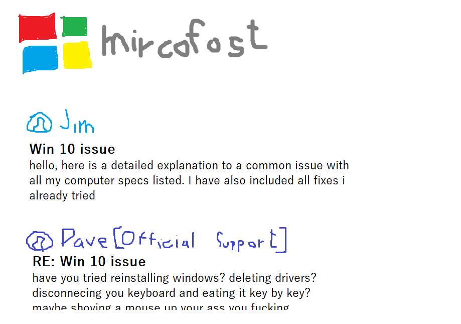 You forgot the same poster on said forum replying to their original question to say that they solved their issue and then fucking leaving without explaining how they fixed the issue