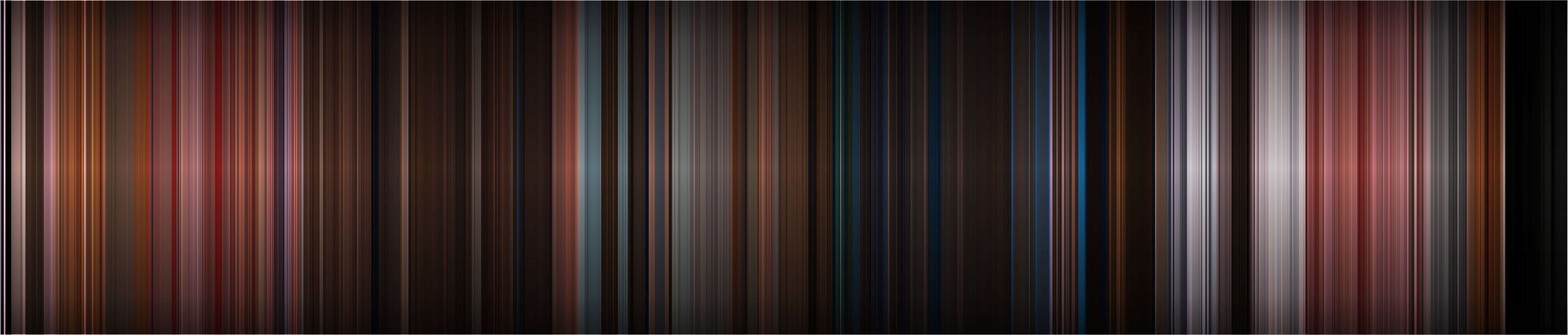 I was inspired by the Movie Bar Codes posted to reddit earlier, and wanted to write a program that creates a cleaner final product focusing solely around color choices. I created this program using Processing to code it in Java. Instead of compressing full frames into single lines, my version compiles it by the average color of each frame. (Longer movies have overlapping lines to fit in the same dimensions.) The result is a smooth spectrum of color that I think turned out pretty great!