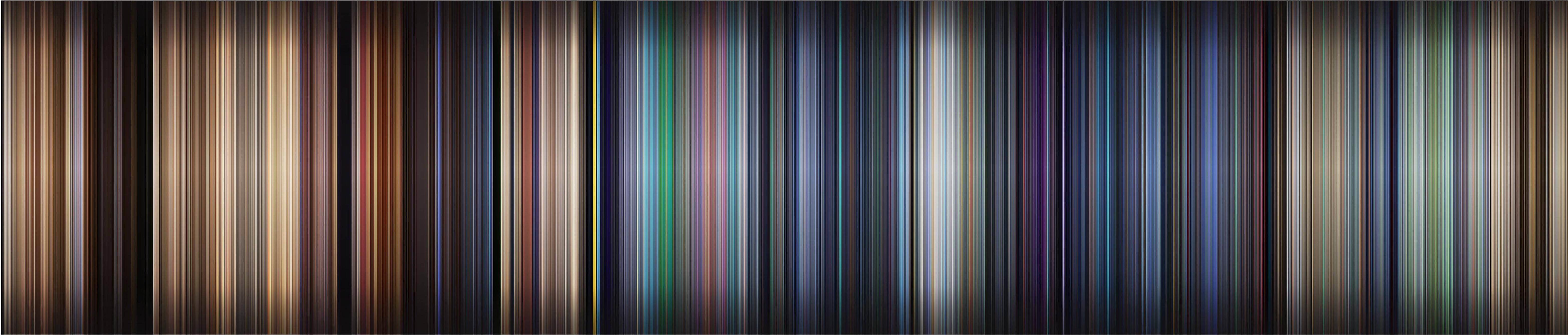 I was inspired by the Movie Bar Codes posted to reddit earlier, and wanted to write a program that creates a cleaner final product focusing solely around color choices. I created this program using Processing to code it in Java. Instead of compressing full frames into single lines, my version compiles it by the average color of each frame. (Longer movies have overlapping lines to fit in the same dimensions.) The result is a smooth spectrum of color that I think turned out pretty great!
