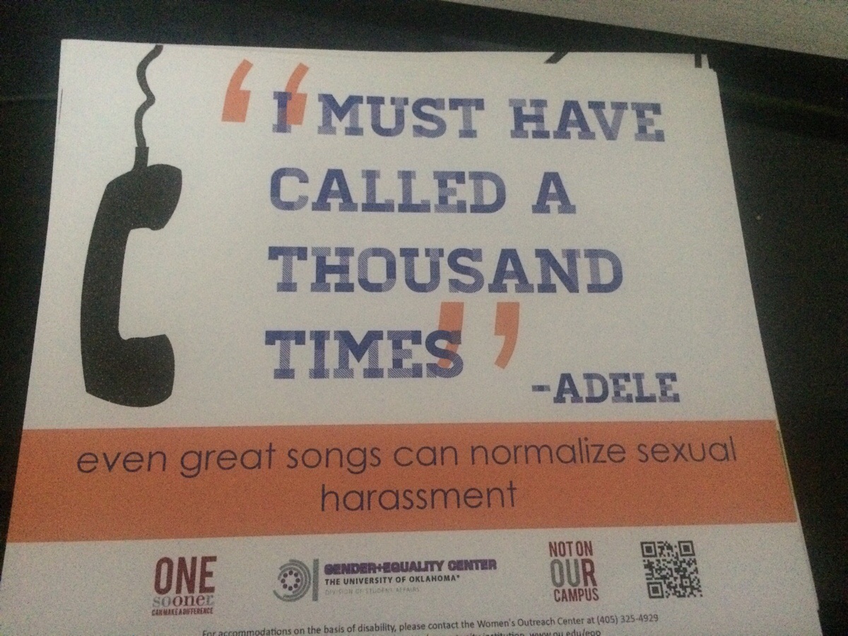 The sign in OPs post is about a song referencing sexual harassment as normal. The song quoted above is not intended to be normal, its understood that it is about a stalker.