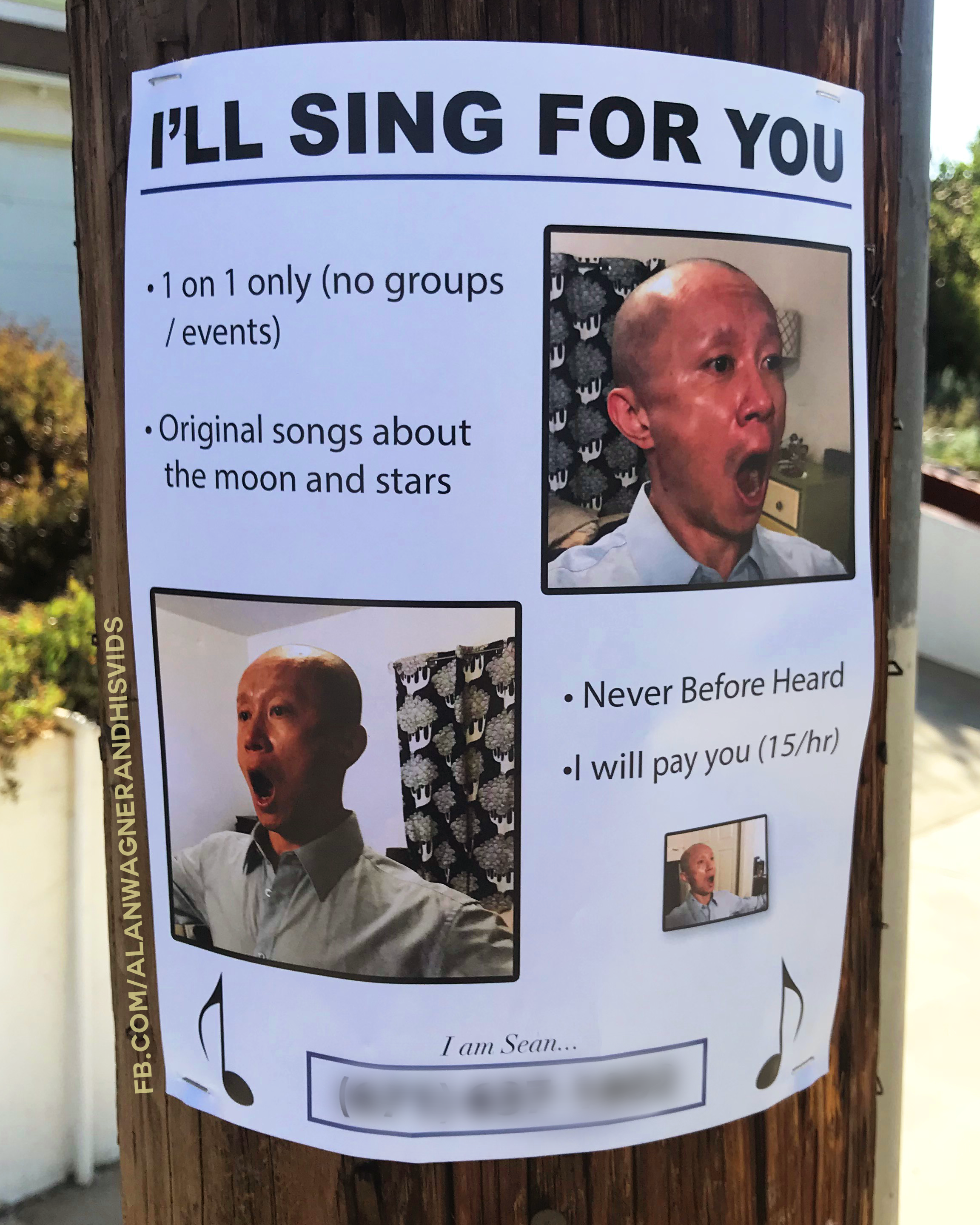 I'm guessing that his Tinder profile hasn't been working well, since he's a bald Asian male. He thinks his singing skills might be enough to woo a girl, though. Problem is that Tinder doesn't allow audio/video. So he's forced to now pay for girls to listen to him sing in hopes that one day a girl will hear his voice and swoon.
