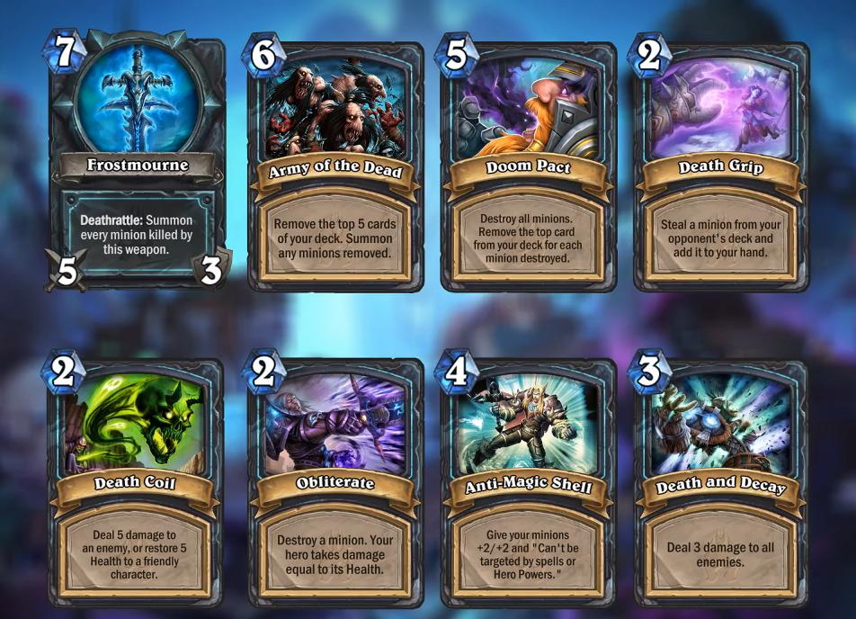 Frostmourne is one of the Death Knight cards! 7 - 5/3 Deathrattle: Sumon all minions killed by this weapon.