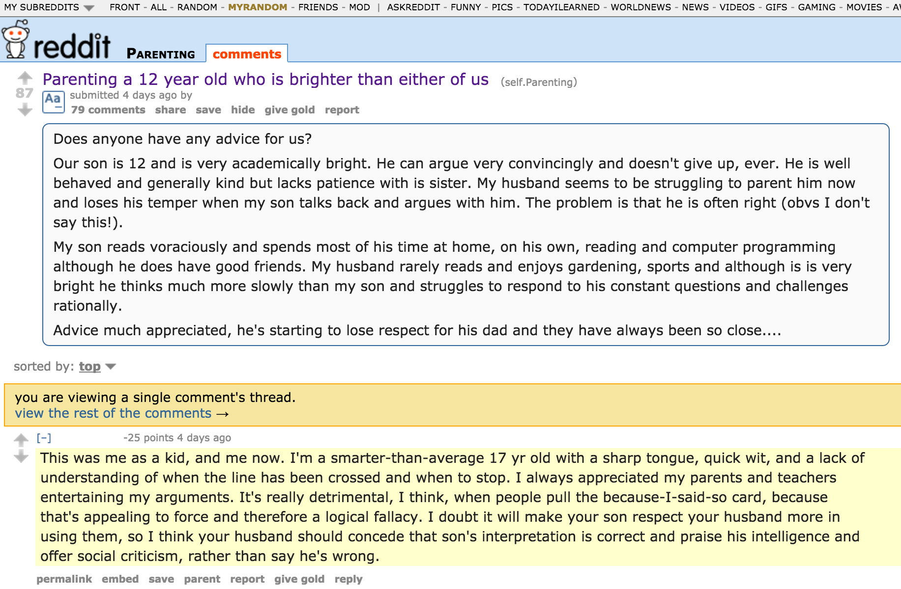 I'm not sure what's so unbelievable about the post, or why someone would troll r/parenting.