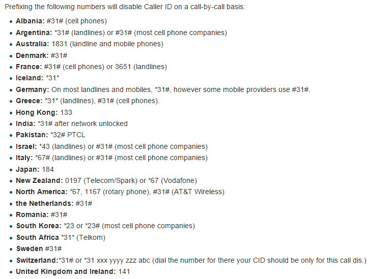 #44 - Make your call anonymous by dialing โ*67โ (North America) before the number. Hereโs the full list of other countries: