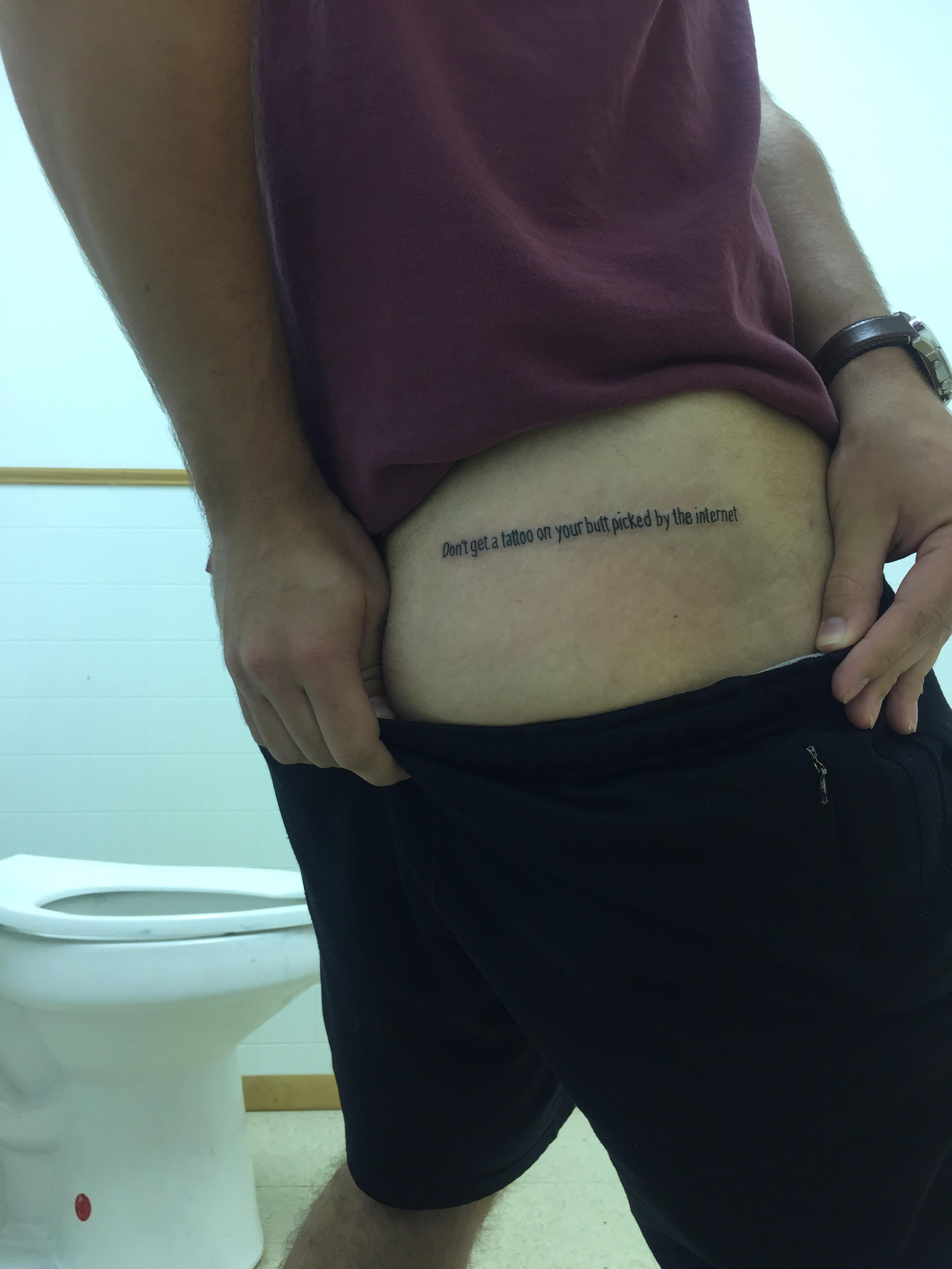 The sentence structure could use some revision. Don't let the Internet pick out the tattoo you're getting on your butt.