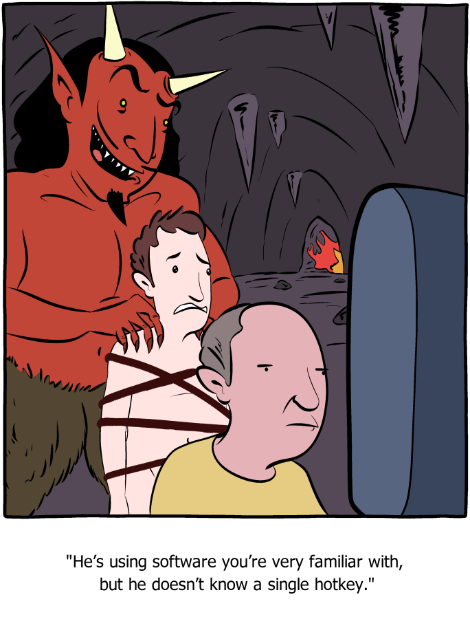 I had a teacher for a class that was teaching an introduction to the Adobe Suite. She didn't even do Ctrl-Z. It was horrifying.