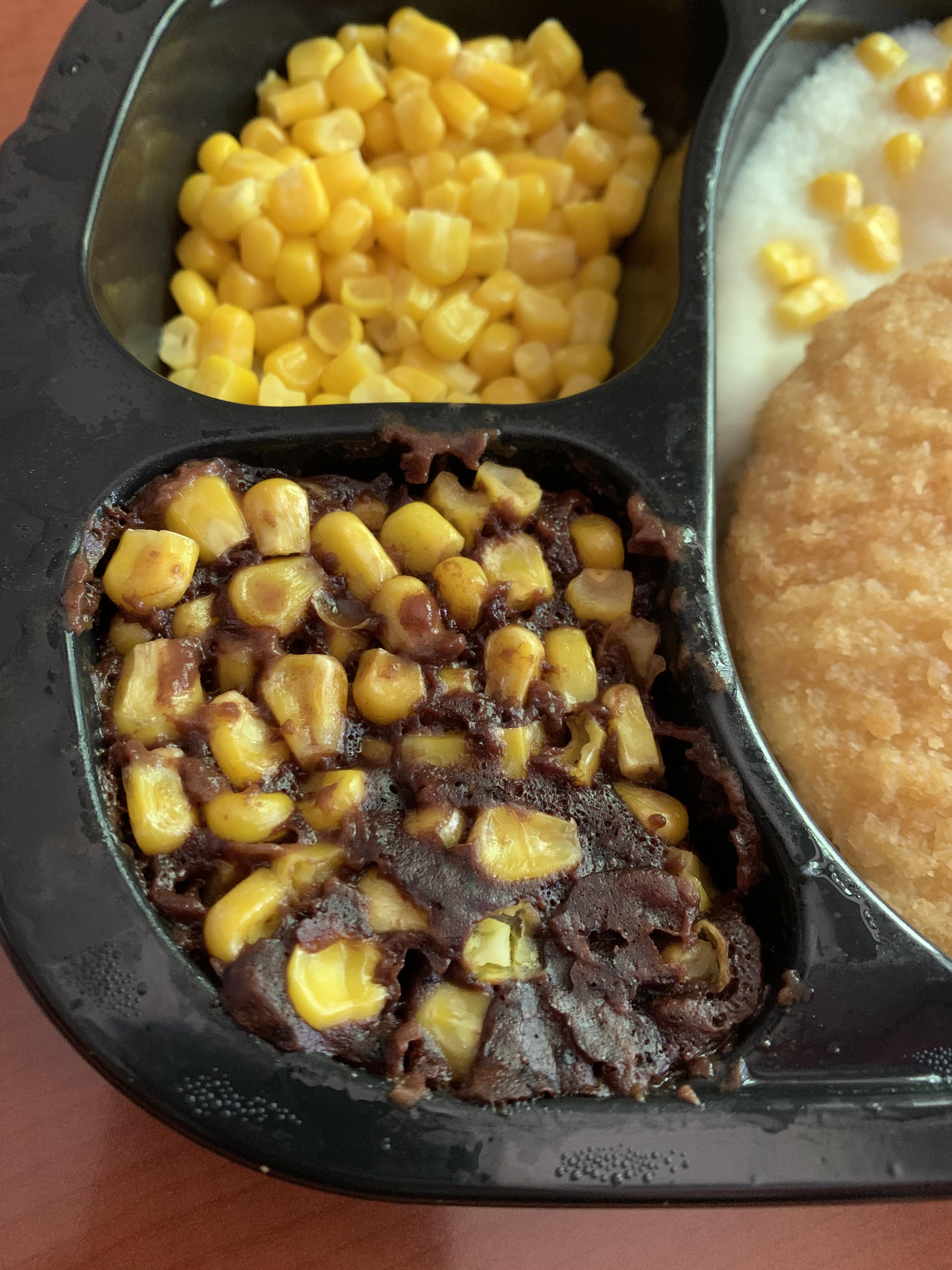 I eat that exact hungry man, theirs always atleast 1 corn in the brownie no matter what. And half the time the brownie reaches out unto the chicken and ruins the taste of it. You get what you get though
