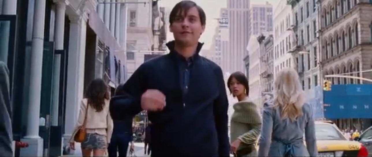 During the entirety of this scene, you have spider man pointing at various women on the sidewalk