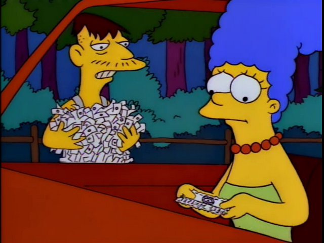 Alright Bart... how about we use the 10k dollars to surgically transform Skinner here into some sort of ..lobster-like creature?