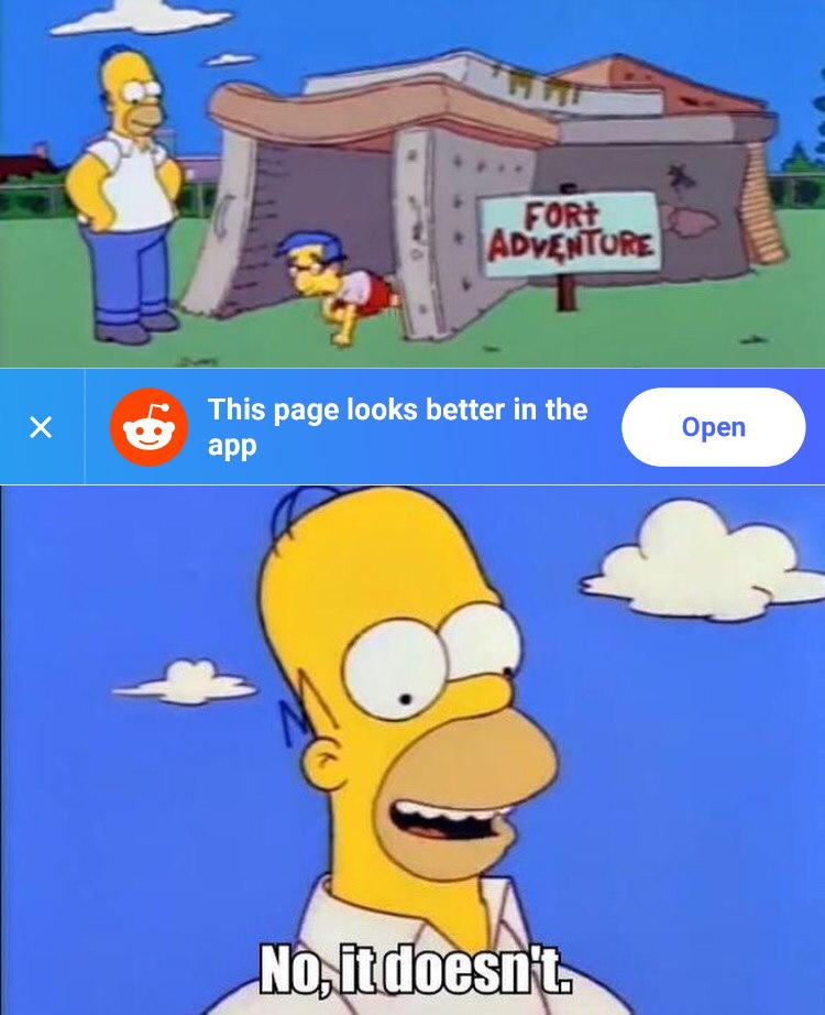 But isn't the point of this shitpost format that Homer is denying something true? Are you saying the page actually DOES look better in the app, the same way that it smells funny in Fort Adventure? I am not a crackpot