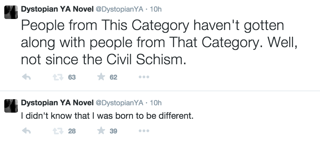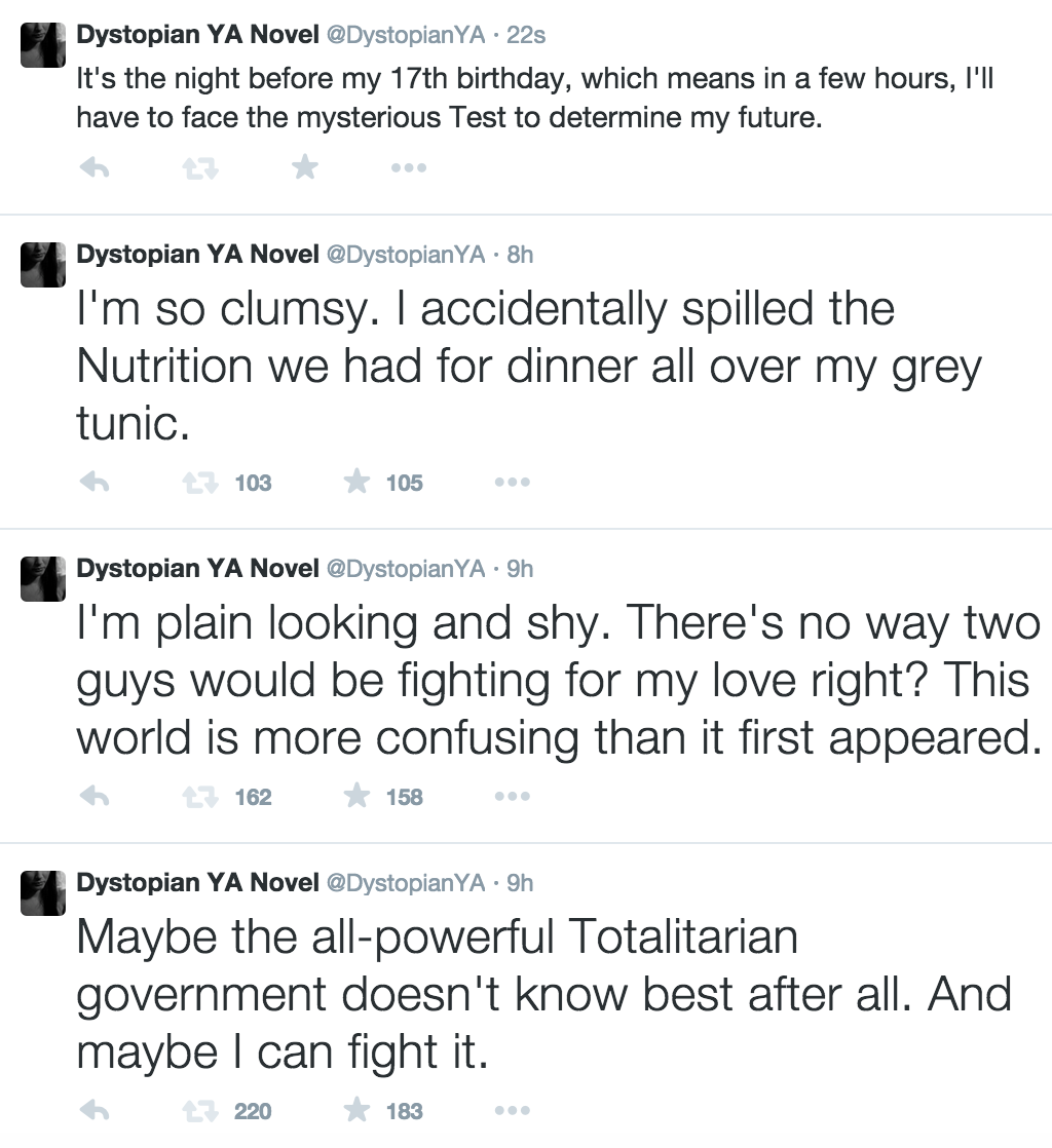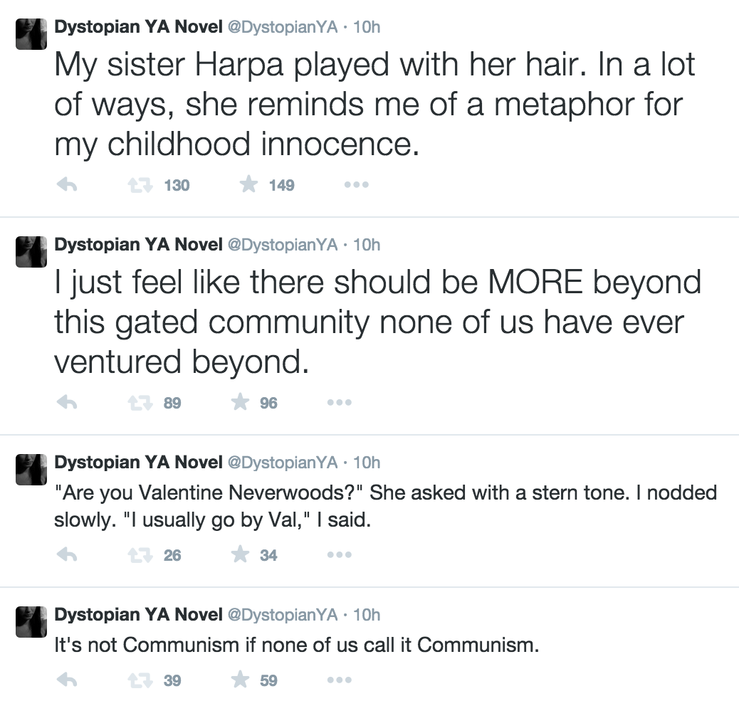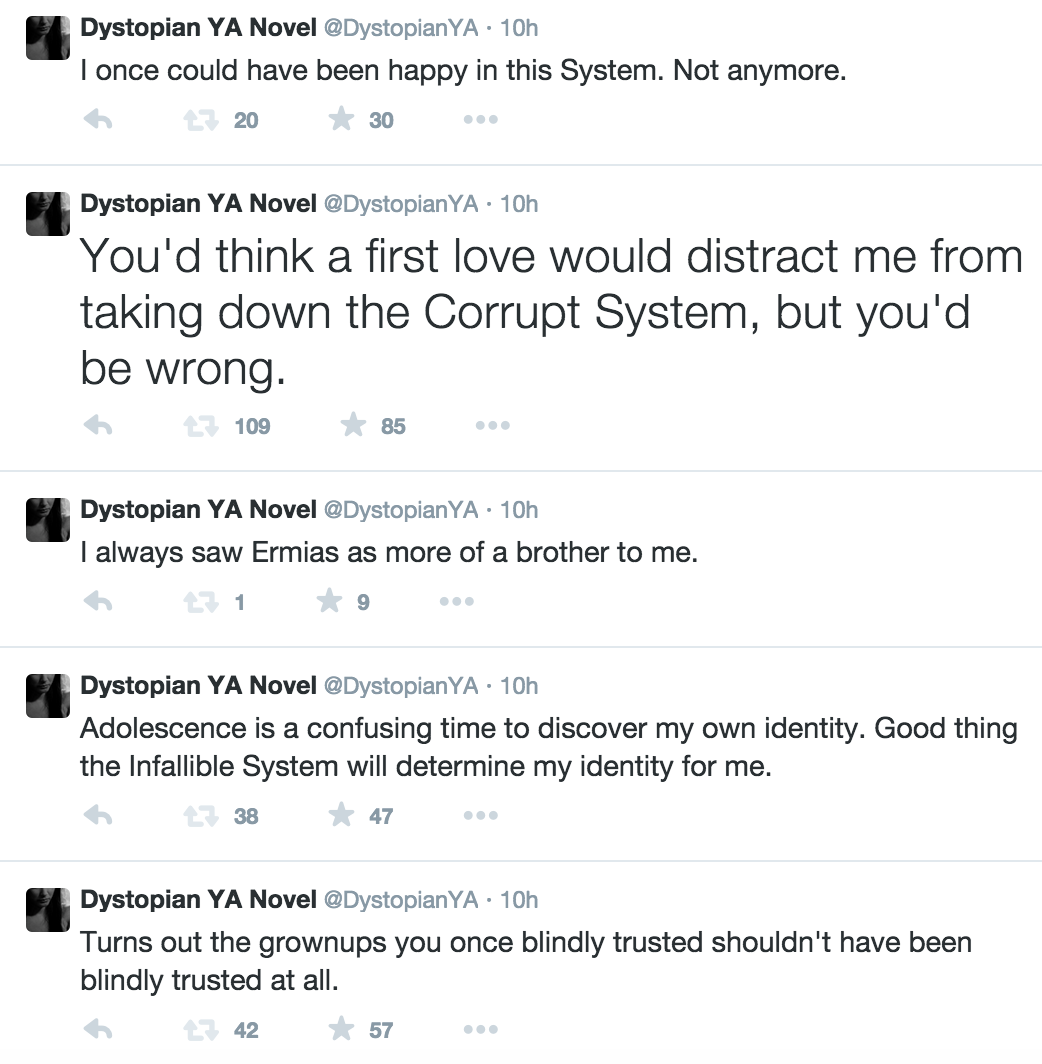 I've had an idea for a dystopian setting for a while, and went through these tweets like a checklist to see how many I was using. Started out pretty good, but then quickly went downhill. I think some of these, like the Infalliable System, are so deeply rooted in the genre they are almost impossible to avoid.